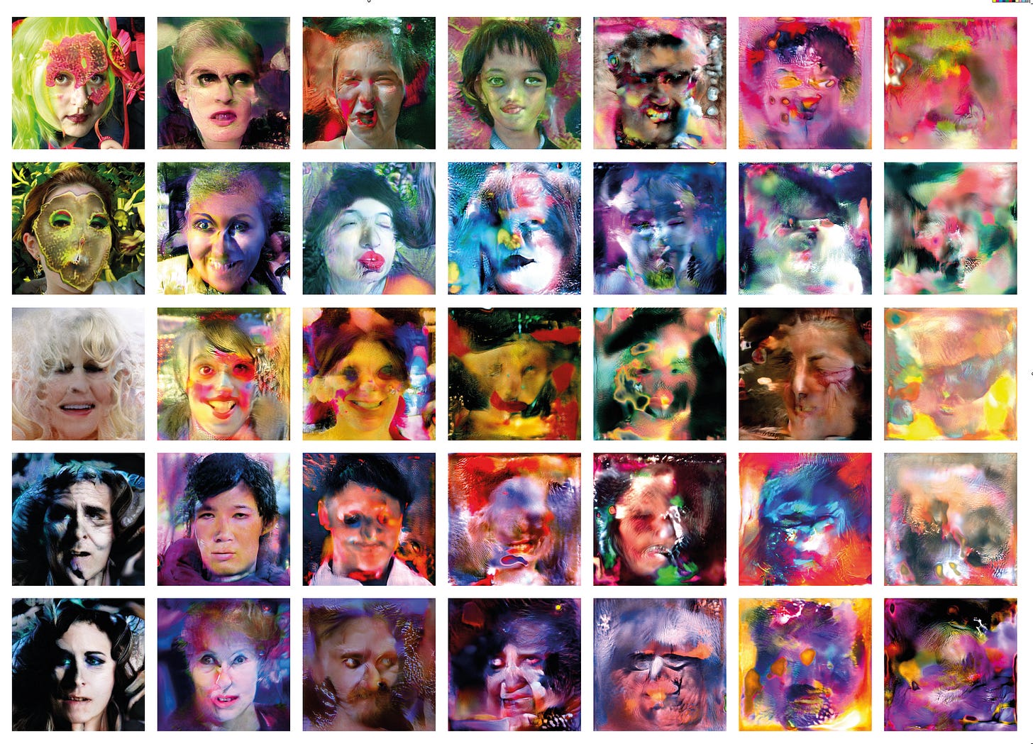 Much of the AI art from this time—like the works of Mario Klingemann, Mike Tyka, Memo Akten, or even my Strange Attractions project—came out of errors and glitches. Artists aestheticized and elevated these accidents into art precisely because they were chosen and captured by human hands. They were moments of deep exploration and interventions into the evolving AI systems. Often working without proper interfaces, artists became explorers venturing into the dark, not knowing what they might encounter—or how it might change them forever.